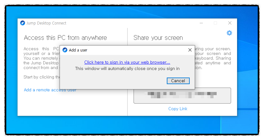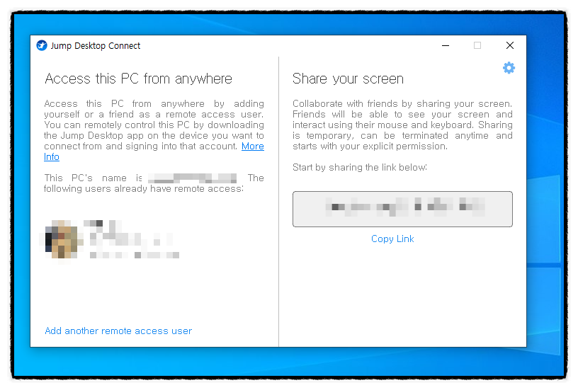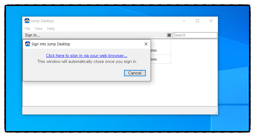 원격을 하려면 상대 컴퓨터에서 점프 데스크톱이 실행중이어야 합니다.