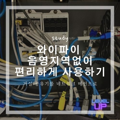 집안에 와이파이가 잘 터지지 않는 음영지역을 해결합니다. 단자함에 공유기를 넣지 않고 거실에 있는 공유기를 메인으로 네트워크를 구성해서 유선으로 어디에서든 동일 네트워크로 편하게